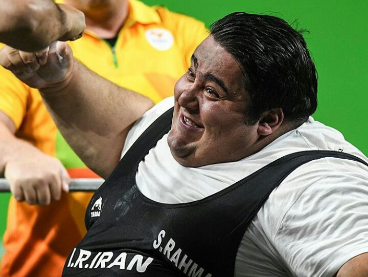 Siamand Rahman, paratleta do Irã, comemorando seu recorde mundial em levantamento de peso com 310kg! (Foto: @paralympics)