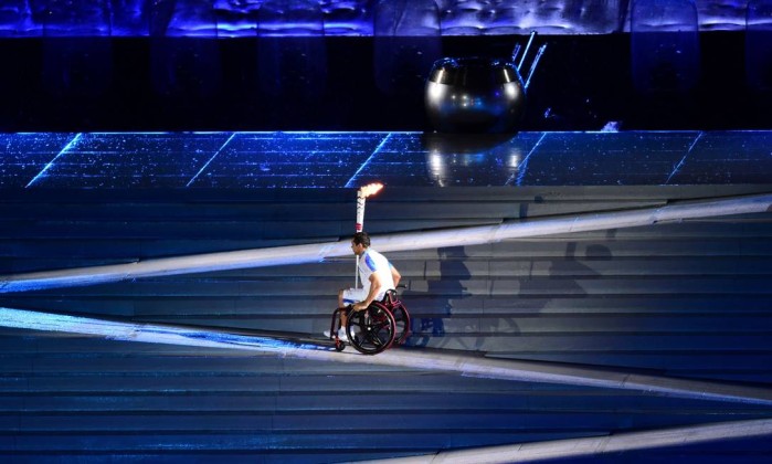 O paratleta brasileiro, Clodoaldo Silva, subindo pela rampa que surgiu das escadarias na cerimônia de abertura. (Foto: O Globo)