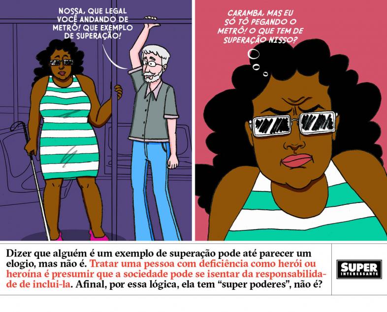 Nosso conselho nesse caso: Dizer que alguém é um exemplo de superação pode até parecer um elogio, mas não é. Tratar uma pessoa com deficiência como herói ou heroína é presumir que a sociedade pode se isentar da responsabilidade de inclui-la. Afinal, por essa lógica, ela tem “super poderes”, não é mesmo?