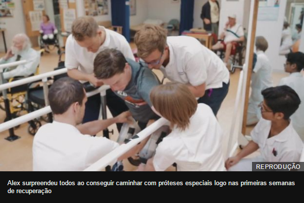 Esse aprendizado começou em um hospital de Roehampton, no sudoeste de Londres. Em apenas duas semanas, Alex surpreendeu todos ao conseguir caminhar com próteses especiais.