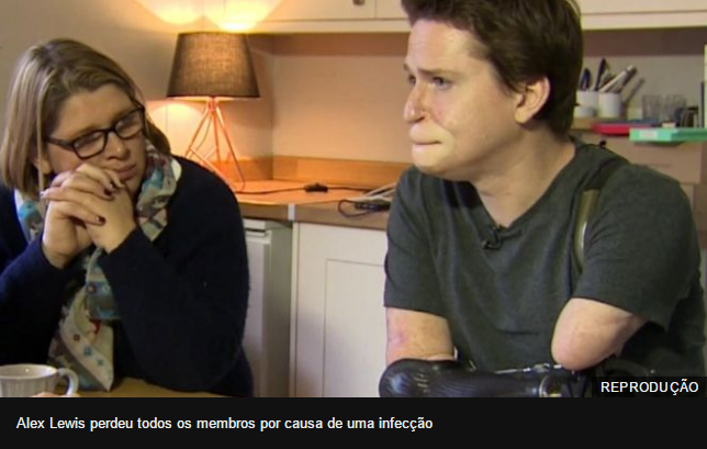 Aos 34 anos de idade, o ex-proprietário de pub viu sua saúde se deteriorar para um estado crítico em poucas semanas. Perdeu as pernas e os braços. Perdeu também os lábios e o nariz.