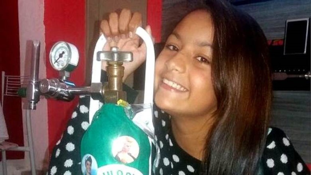 Bárbara Nascimento e o ‘inseparável’ cilindro de oxigênio: mais de 40 internações e peregrinação até diagnóstico correto (Foto: Arquivo pessoal)