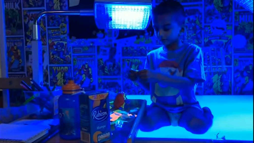 Para tratar a condição, Ismail passa 20 horas de seu dia sob luz ultravioleta – ele brinca, come e dorme dentro do quarto, sob os efeitos da luz.